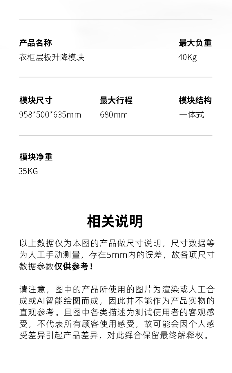 智能衣柜升降层板模块
